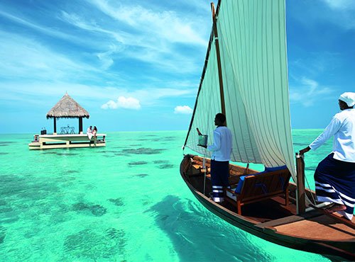 Only near the southern end of this natural coral barricade do two open passages permit safe